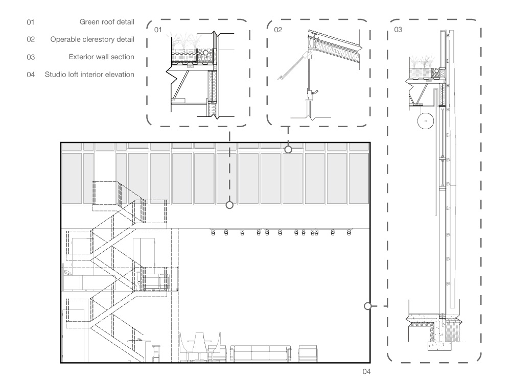 For my graduate Comprehensive Studio, I partnered with two of my classmates to devise a scheme for purpose-built artist housing in an area of downtown Columbus, OH undergoing redevelopment as a vibrant arts district. The proposal looked to the prototypical industrial warehouse as a model that could be subdivided into living, work, and exhibition space for its residents. The studio required that our final product include detailed construction documents.