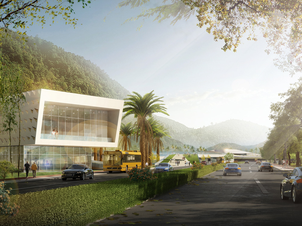 The system we envision buries both parking and vehicular access roads beneath an expansive, wandering promenade that serves as the primary access route for site’s hotels and other amenities, including a ferry terminal, visitor’s center, transport hub, exhibition hall, theatre, and food court. The multi-layered infrastructure of the proposal also informs the economics of the new development. Mass-transit nodes placed along the path help to activate its public spaces without the noise and pollution of car-traffic. By threading the promenade around the site in an Ω-like shape, previously undesirable land further from the beach becomes an easily-accessible place to construct hotels and apartments aimed at tourist interested in both the mountain and seaside activities the site has to offer. My specific role in the project was the design and modeling of all the public buildings and amenities envisioned by the masterplan.