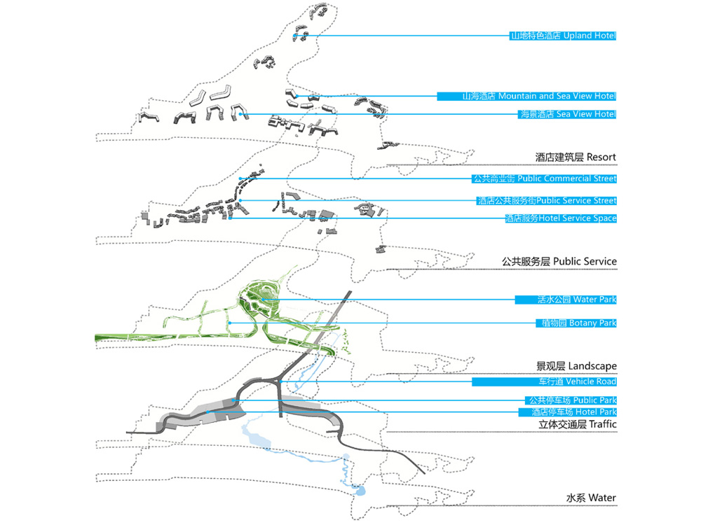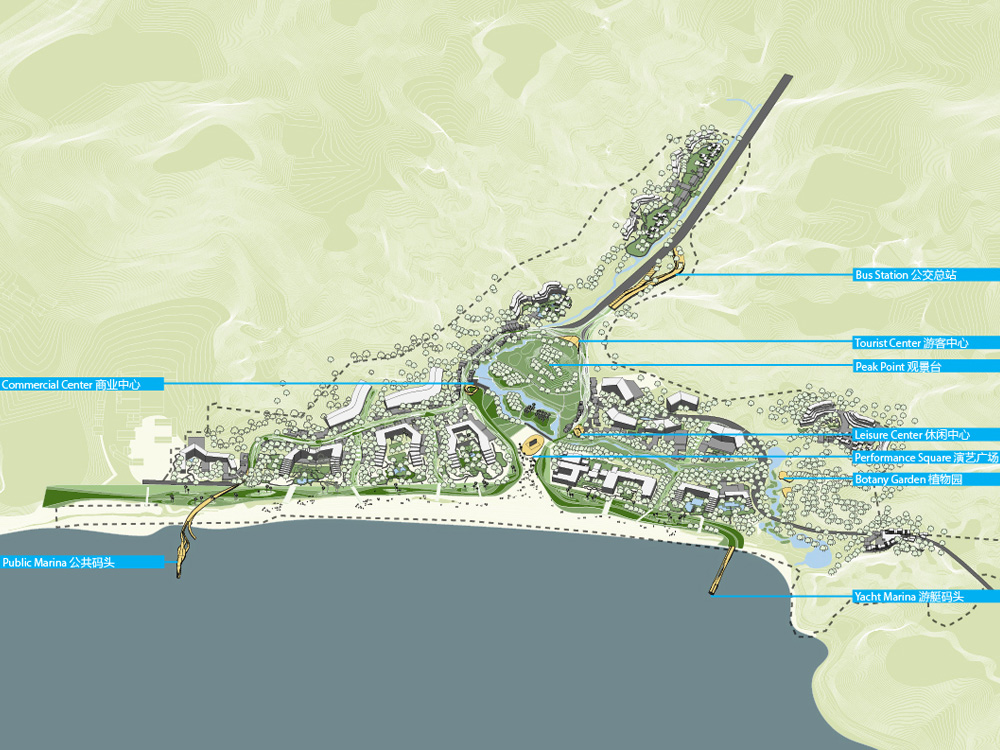 A unique ecological resource for an otherwise densely-populated urban region, the Xiasha district is a rural, coastal setting outside of Shenzhen. FCHA’s second-prize winning proposal for the masterplan project of Xiasha Wander Bay seeks to strike a balance between the preservation of the site’s pristine ecology and the needs of a four-season tourist town. The new masterplan prioritizes pedestrian and other carbon-free forms of transportation through the introduction of a multi-layer infrastructure of transit, public space, and landscape.