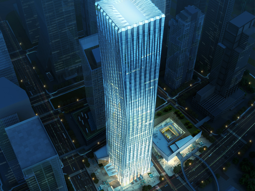Shenzhen Capital Group selected a joint PTW and CCDI proposal in a design competition for its new headquarters in Shenzhen’s Nanshan District. Located on a site that was formerly in the open water of Shenzhen Bay, a 54-story office tower will rise from a 4 story retail podium, with direct access to the city’s metro system. The project, which occupies a site adjacent to 30-40 story towers on both the east and west facades, prioritizes views and daylight exposure by pinching and stretching the mass of the tower.